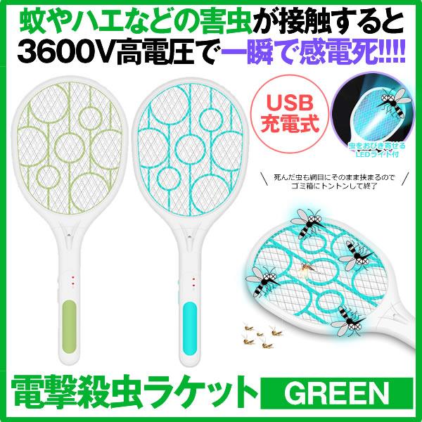 大好評です 蚊取りラケット 電撃虫取り機 蚊取り器 蚊よけ ハエ退治 三層安全メッシュ 3600v電圧 Usb充電式 Ledライト 害虫駆除 屋外 室内 殺虫 グリーン Xh 19 Gr メーカー直送